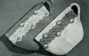 HANDLE . . . With 1st color ch 6. 1st row: Sc in 2nd ch from hook and in each ch across (5 sts). Ch 1, turn. 2nd row: Sc in each st across. Ch 1, turn. Repeat 2nd row until piece measures 4 ½ inches. Fasten off. Fold in half and whip long edges together.